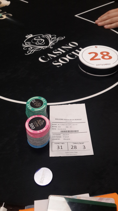 Ребята я начинаю серию Party Poker !!! Первый турнир Turbo Bounty 300KO за 660$ На улице идет сильный дождь, но это даже на фарт, прогуляться от отеля к казино не вышло, пришлось ехать на такси 800м