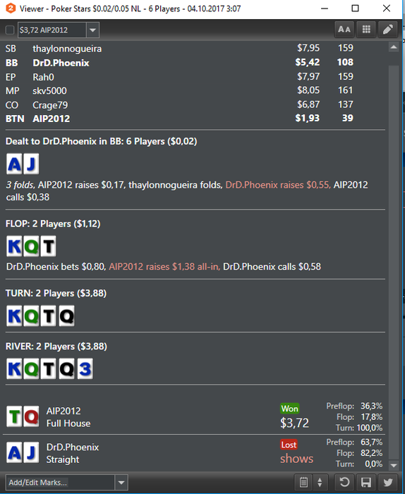 В последнее время начала чувствовать себя опустошённой, появляются первые признаки ассоциальности. Не знаю, почему многим покеристам это нравится, но мне от таких перемен грустно и одиноко. Как будто убрали что-то важное из жизни. Конечно, быть может все дело в природе, женщине по природе нужна семья, я не знаю. Но что я знаю точно, так это то, что мне это не нравится. Нужно начинать что-то менять. Только вот что? Свою трансформацию "из унылого гов.. в позитивную какашку" начну с сегодня. Пока не знаю, что буду делать, но уверена, что со временем сознание даст ответ на этот вопрос.) А сегодня меня ждёт новое правило-выполнение десяти обязательных заданий. И на сегодня это: 1. Узнать новые концепции в теории 2. Начинать построение нового префлоп-спектра 3. Отработать и закрепить новые полученные знания 4. Отработать стил 5. Отработать защиту 6. Подготовить все технические и визуальные аспекты к записям 7. Вызвать сантехника (да, это кабала, похоже навечно) 8. Новый день-новый рекорд в зале( хотя бы в интервальной ходьбе на 8 перейти) 9. Провести генеральную уборку 10. Забежать в сауну))) ..........негласное 11. Отчитаться о проделанной работе............ Я, очень надеюсь, что гласное озвучивание своих планов-будет стимулом их соблюдать. В конце концов, есть у меня сила воли или нет?! Буду лениться, не отчитываться - буду считать себя слабохарактерной тютей!!!Официально! P.S. В основном, это конечно, относится к питанию