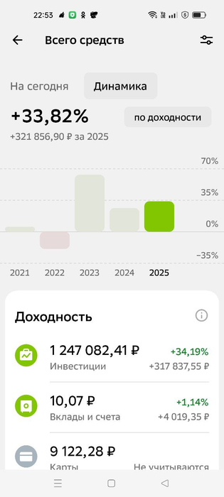 Azi @ 29.10.25Romana88, 33.82% в 2025 году? Это превосходная доходность для такого года. Выше чем ОФЗ и LQDT.
