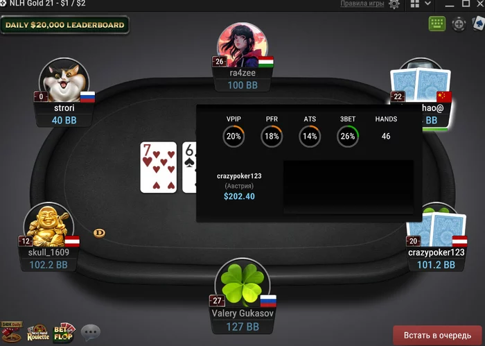 Если вкратце, я устроил охоту на ведьм на 8 аккаунтов из Китая, которые третий день подряд вместе появляются за столами раша в промежутке с 6 до 7 вечера, через 200-300 рук все три дня имеют идентичные показатели с погрешностью в 1-2% в хаде, которые не повторяются ни у кого другого, никогда не фастфолдят, играя 4 стола, не сыграли ни одной руки на регулярных столах и которые умудрились вчера одновременно оказаться в ситауте и вылететь из пула по тайм-ауту.