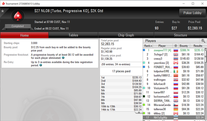 Пробил с фильтром только хайла и охренел. У него уже 630 мтт хайлы на новом нике. При этом лимиты он играет абсолютно все. 121 турнир из них вообще нанолимиты дешевле бакса. Он регулярно катает всякие 0.22$ с гарантией в 10-15 баксов. Регулярно грузит всё до 22, периодически шотит выше, даже в 109 воскресном поделил разок. И это не рост по лимитам такой стремительный, а чел просто грузит всё что есть)