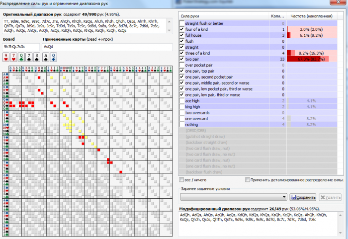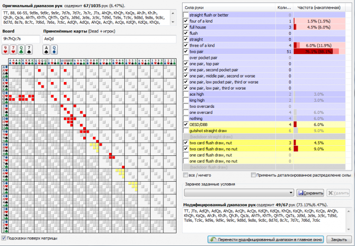 Также надо записать в ближайшие планы покупку флопзиллы, так как в халявном эквилабе нету такой прекрасной функции, как выставления частоты появления определенных рук в диапазоне.