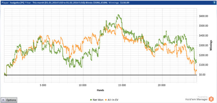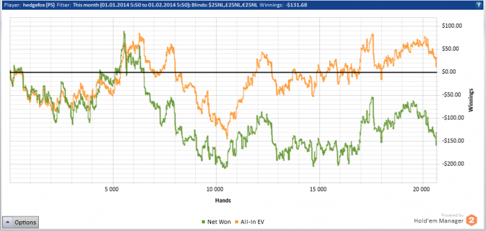 Спускаться по лимитам буду, если на счету будет 30би нл25, второй точкой будет 30 би нл16 (да, у нас и такой лимит есть), третьей 30 нл10 (думаю если дойду до него то покер уже наверняка превратится в хобби, или же, что намного вероятней, я в жесткой и ультимативной форме навсегда удалю клиент с компьютера).