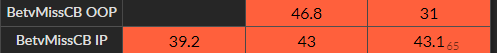 Что касается моей руки. Солвер конкретно эту комбу против оптимального оппа блефовать отказался, но блефовал с другими AJo, предположительно из-за того что эта блочит бекдор с бубновыми АКs, первое что пришло в голову. Но раз солвер так играет с этой рукой но просто с другими мастями, то думаю что в целом с моей стороны сыграно нормально, если подмиксовывать с чекбеком ривера.