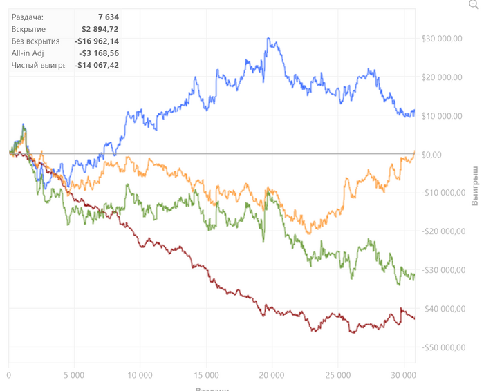 Короче винрейт по ЕВ/bb на 1к+ за 53к отыгранных рук 7.6/100, а по жизни -0.5
