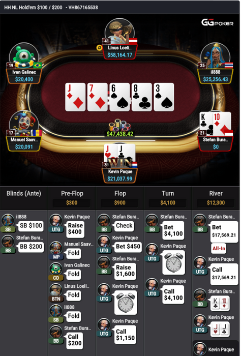 * забрал 3 стека по красной и 2 стека когда доехал своими блефами и вы сыграли чек-чек или вы стекнулись. Опп увидел парочку рук с твоего ренжа овбета.