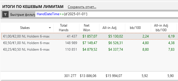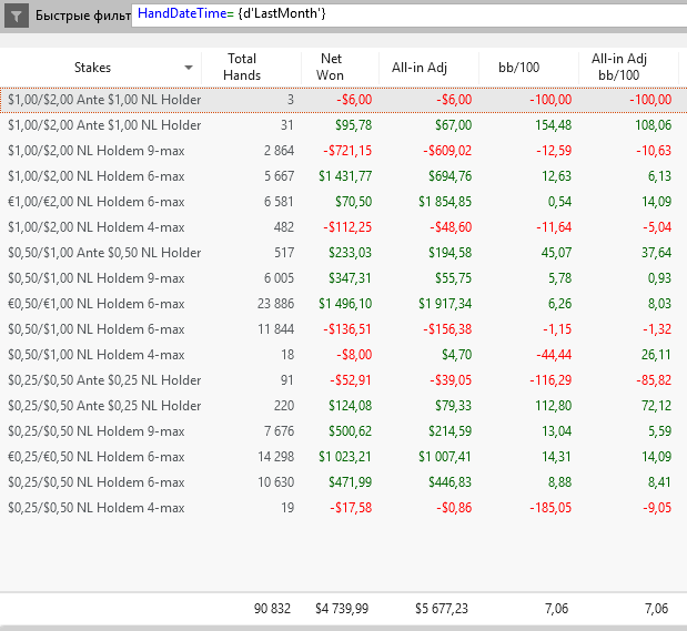 Кстати, вопрос знатокам. Можно ли как то отфильтровать раздачи, которые были сыграны на бомб столах, но при этом бомб потами не являются? Цель в том, чтобы понять, окупают ли обычные раздачи на бомб столах залив, который несут бомб поты или нет? Другими словами, хочется понять, есть ли вообще смысл играть бомб столы? Чёт по моим прикидкам это не окупается, но хотелось бы увидеть цифры.