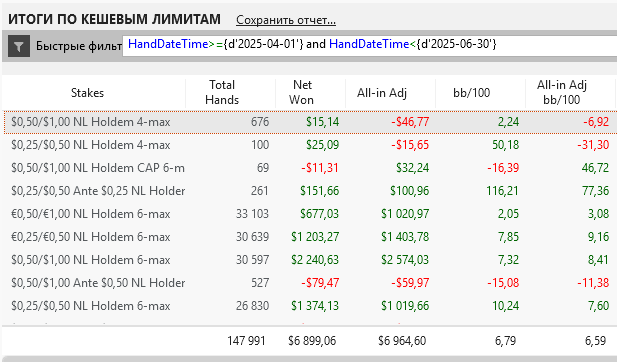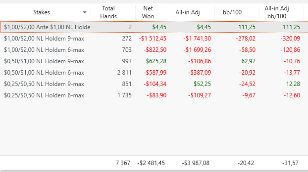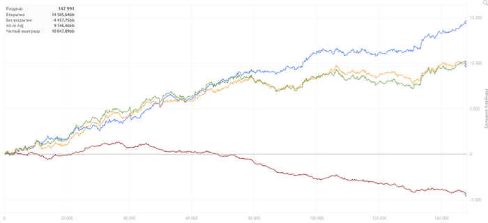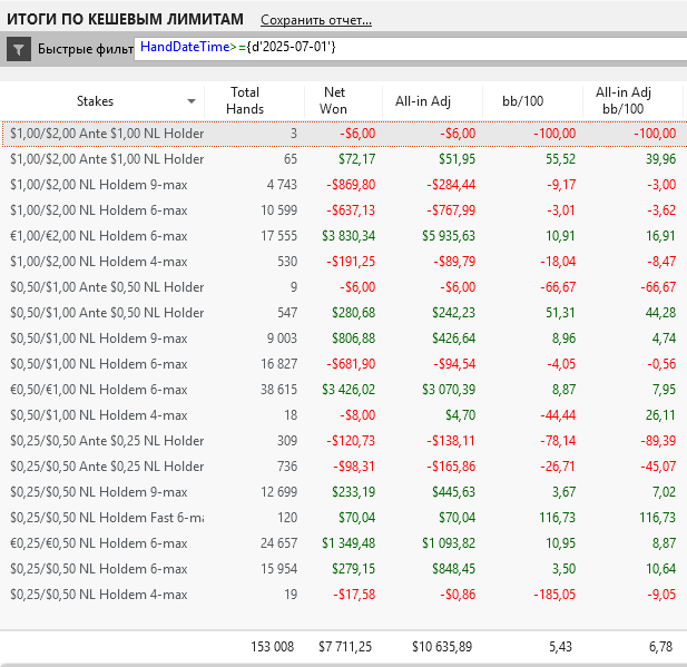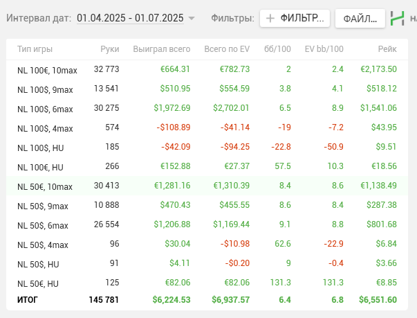 Была одна сессия , где на нл 100 подарил фишу 250бб и на нл 200 150бб регу в 3-бет потах после чек-рейзов. Вот там я, конечно, поплыл. В остальном вроде неплохо получилось.