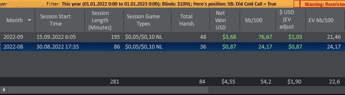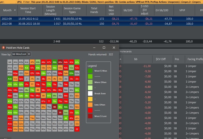 На сб лучше отказаться от колдколов и играть либо 3бет либо фолд. Когда 3бетишь это полюбому плюсовее. У тебя колд кол -63бб/100 играет. Когда ты фолдишь ты лузаешь -50бб/100! Это выгоднее)) И как вообще лузрейт на СБ может быть больше чем на ББ, это вообще невероятно. Подумай над тем чтоб отказаться от колдколов)