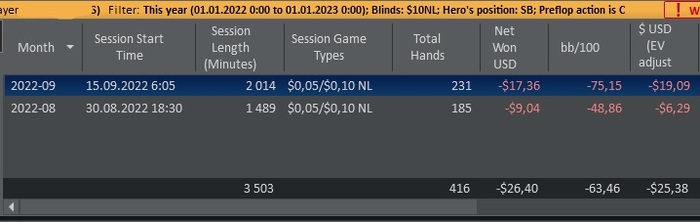 Если общий колл префлоп у меня 416 ситуаций и -63,5 / 100, но при этом компилты 322 ситуации в -40 / 100, а колдколы 84 ситуации в + 54 /100. То как же получается - 63,5 ? Как я говорил выше, где то затерялись 10 рук, может они самые заливные, но где они и как на них посмотреть ))) Херня какая то, из за этой ситуации, мой анализ идет по звезде..
