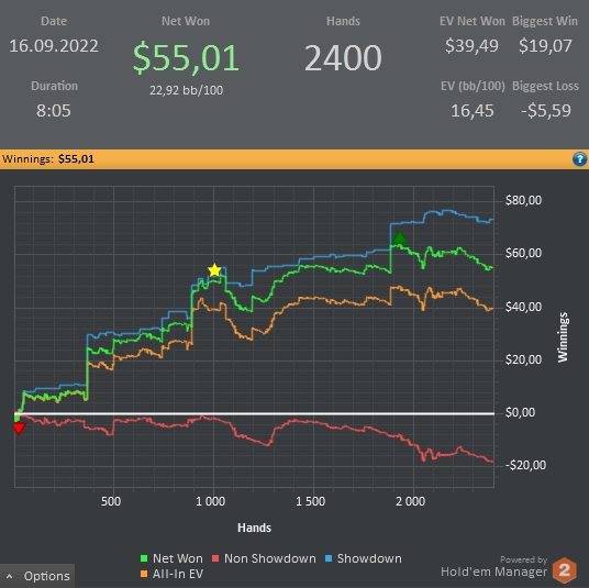 Сегодня нормас ) Возможно потому, что зарыл КК на префлопе, где пахло тузами.. ну и еще пару фолдов.