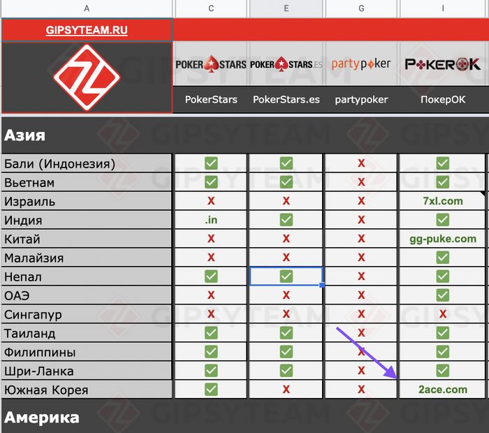 При этом в некоторых покер-румах все равно можно играть из этой страны (строка 66 на данный момент в таблице по ссылке):