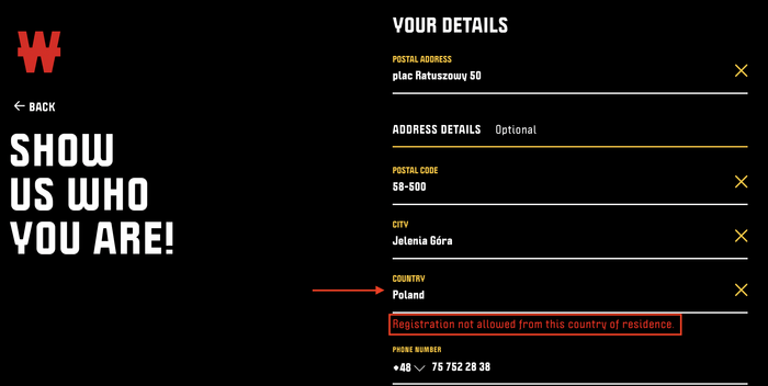 Верифицировать аккаунт с адресом из Польши нельзя в Winamax: