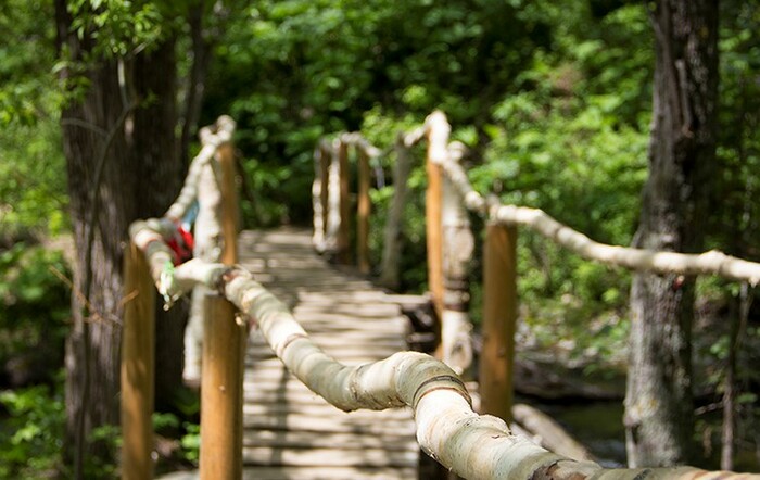 Чтобы попасть на скалу, надо пересечь речку Комиссаровка, раньше там была прикольная, но страшная, навесная переправа из тросов, сейчас сделали мостик.