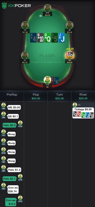 Я наверное больше играть в 100бб не буду, вернусь к своему любимому 40бб стеку. Честно даже не обидно за деньги, а просто из-за потерянного времени и нервов. Когда ты сидишь скидываешь хорошие руки против его диких 3бетов, но в итоге собирая супер сильные руки, тебя просто каким-то чудом переезжают, так еще столько раз подряд. Это просто жесть. В 40бб, удвоился бы и пошёл бы за другой стол. Это мой наверное второй или третий фиш в годмоде против меня за последнее время, при чем без шансов. Будто это какая-то пиханина, но по факту он просто всем остальным дарит деньги, но не тебе.