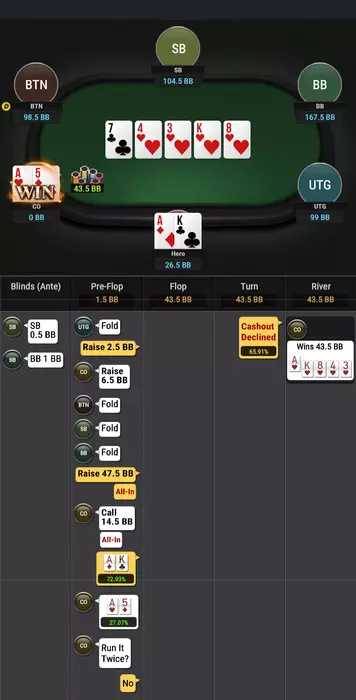 Я не разу не выиграл, т.е даже не было не единого раза где бы я рисковал больше 150бб против него. Суммарно он меня переебал 20 раз подряд. Я играл за этим столом максимум с впип 10...