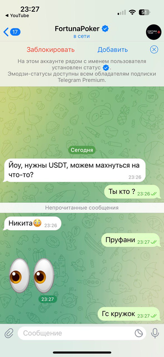 В тг нарисовался какой-то мошенник