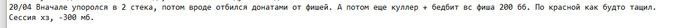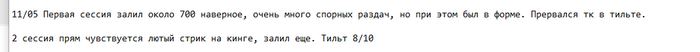 Тут уже стал писать реже, иногда через день или 2 после сессии потому забывал за какой день писать. За 04 нету записей, а за 05 две сессии, скину обе. На венике то я мб и залил зато в других румах сложилось видимо.