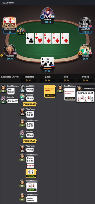 ударная утренняя сессия 6 раз сетом в сет старше и два раза оверпарой проиграл выставление в ФД, в итоге минус 9 стеков 😧