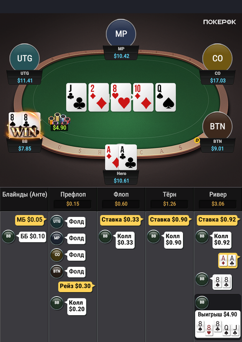 3) с большей вероятностью префлоп рейзер овер пары будем сам ставить флоп, а в чек рейз уводить только монстры или руки мимо чек фолд (сам что отправлял бы в чек рейз или в чек фолд чек колл? в мултипоте)