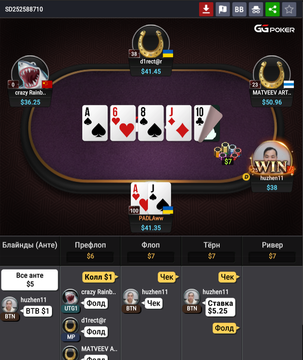 Турнруную сессию отыграл хорошо. +пару 4 баина. Но последняя раздача: БэтБит и я залетаю на столы SHORTDEKA