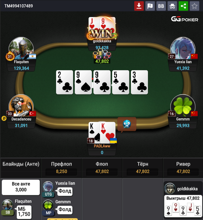 Вот казалось бы -почему на его ставку 9130 не дать алл-ин, у тебя же ФХ!? -Да потому что мы на покерке, брат! Там когда крутит, то ты просто чувствуй!