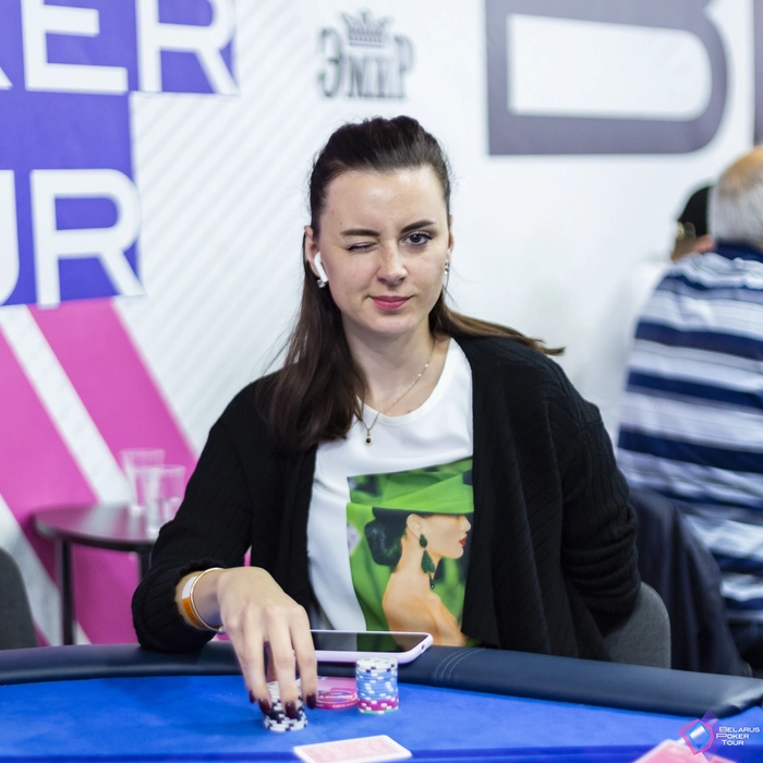 Яна Щербук набила хороший стек. Посквизила с малого блайнда с в троих. Рейзер Леонид Фураш сдался, Олег Боровый и ещё один игрок колл.