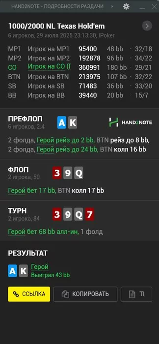 и тяжело постфлоп, очень полезно читать такие мысли от тебя с примерами. Может и мне поможет?