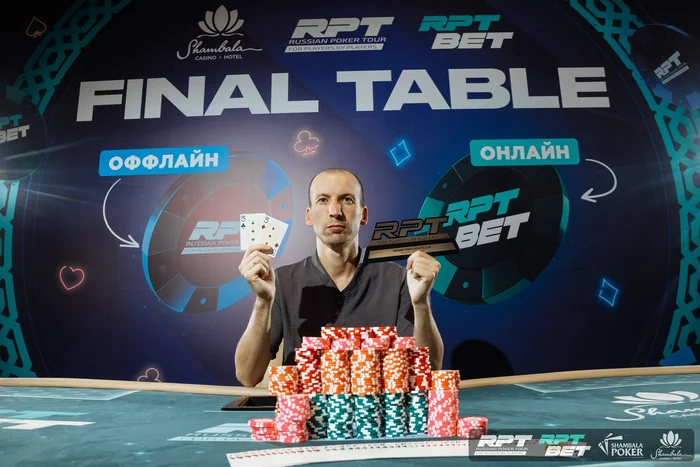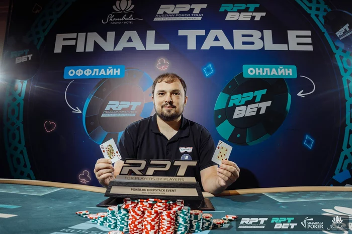 🏆 Дмитрий Краснов вместе со своим трофеем за победу в ₽14 000 Poker.ru deepstack KO event!