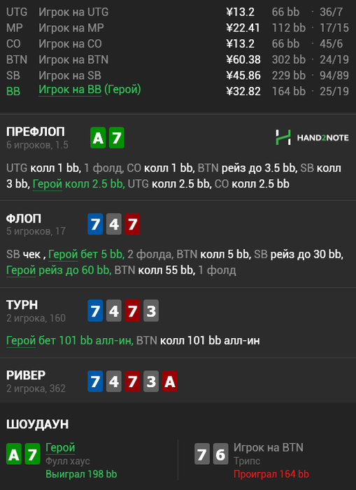 Что мы знаем о игроке? Ну, это просто какой-то рег. До этой раздачи +- адекватный. В полной херне замечен не был, нотсов нет. И если бы это была очередная дичь от игрока, который решил показать, кто тут «батя», или просто он ТП решил чек бих, не пытаясь вельюбетнуть, то я бы даже и не кидал такое. Так как, если такую дичь каждый раз постить, у меня весь блог утонет в дурацких раздачах.