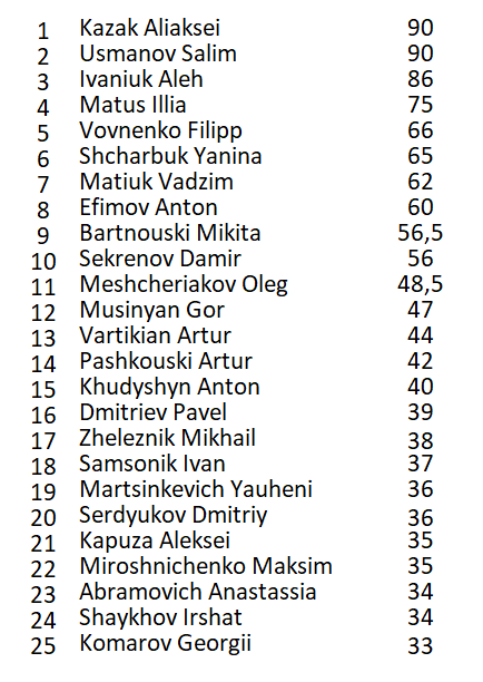 Так выглядит ТОР-25 с учётом всех завершённых турниров:
