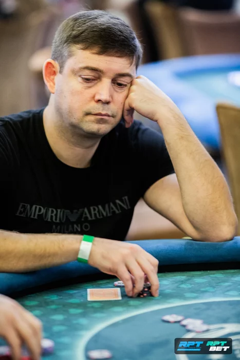 За этим же столом Оганнес Арутюнян открылся с СО с карманной парой , на малом блайнде его уравнял Лука Вивиани.