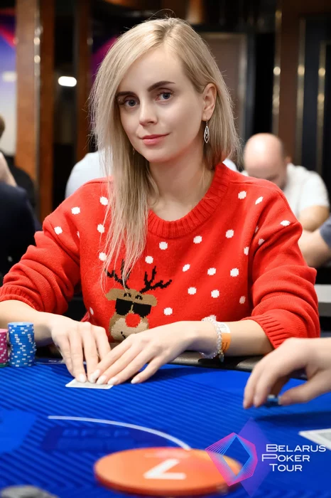 На предпоследнем уровне из игры выбыла Марина Мешкова. Ее переехал Евгений Санюк > . Шестерка для Санюка пришла на флопе.