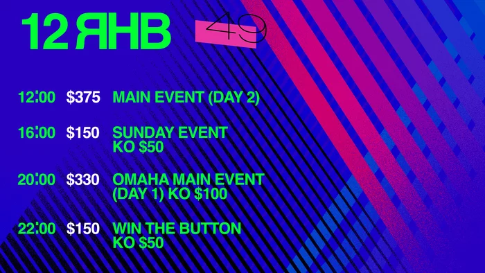 🔘 В 16:00 пройдет $150 Sunday event KO — однодневный турнир с классическим нокаутом $50. 9 уровней по 20 минут здесь доступна поздняя регистрация.