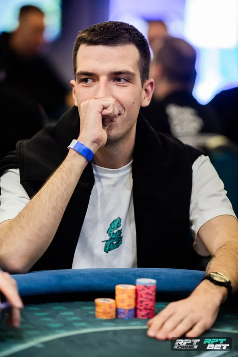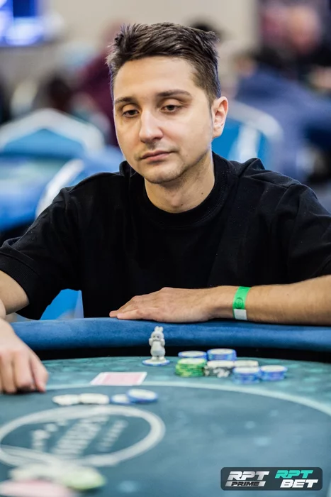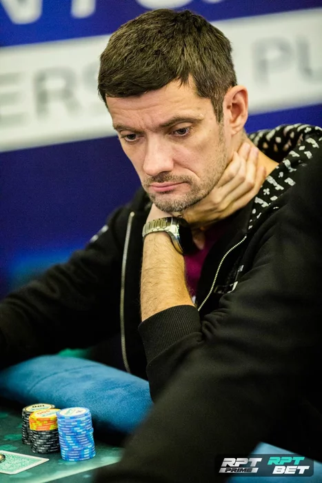 Антон Семенюк с запушил на стек меньше 10бб, получил колл от Луки Вивиани на . Третьим думал залететь Зоран Марич с кнопки, но выбросил.
