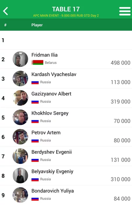 15-й уровень: 2,000/4,000/4,000Напомню, еще один уровень (50 минут) в турнире открыта поздняя регистрация.