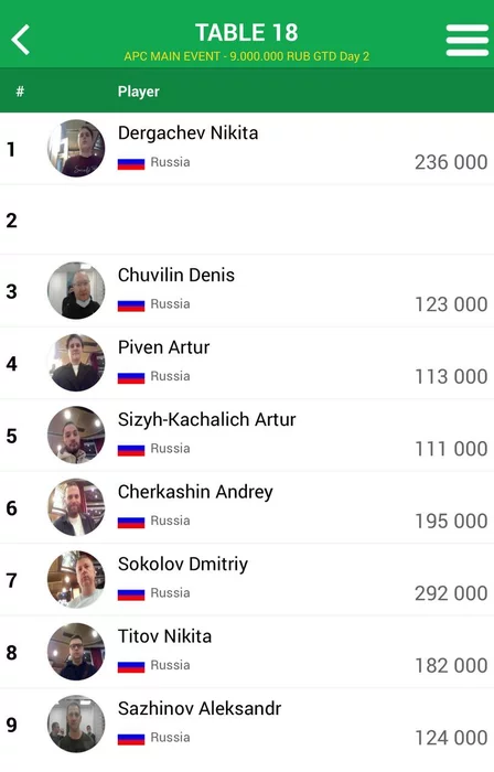 Средний стек 293,200. Примерный чипкаунт: