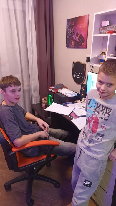 Приехал Ромин дядя (14 лет, брат жены ). Вот, сидят домашку вместе делают . Сами! В комнату зашёл, чтобы позвать их покушать сходить и удивился.