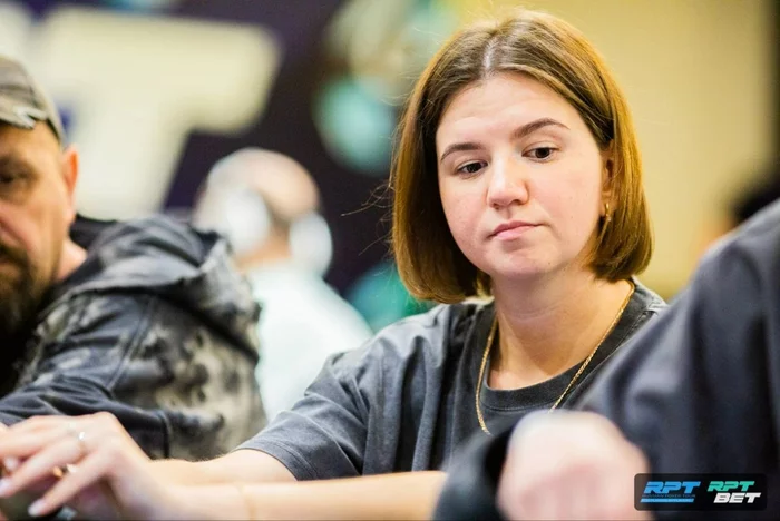 Алина Полегошко (343к, SB) запушила с , на BB кол сыграл Цукаленко Павел (100к) с .
