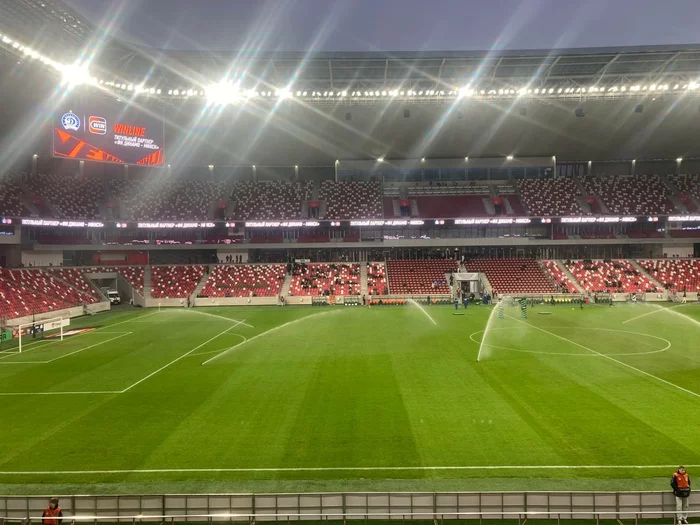 В Брянске футбол любят. У нас хорошая посещаемость и очень активные болельщики. Как и в большинстве клубов есть свои «Ультрас», а так же вторая активная группа болельщиков «Запад», на западной трибуне, куда мы теперь ходим вместе с Машей. К слову про интерес Маши к футболу... До знакомства со мной она была к нему абсолютно равнодушна, но с каждым матчем на стадионе я видел, как её интерес к футболу усиливается, ну а сейчас мы уже вместе смотрим футбол и по телевизору, и в нарезках на различных видеоресурсах, и на стадионах... В Минске во время недавней серии БПТ52 даже случайным образом попали на матч местной команды Динамо-Минск. Стадион там конечно красивый и современный, а вот болельщиков даже меньше, чем у нас в Брянске. Ну и они какие-то сонные. Ниже фото со стадиона Минского Динамо.
