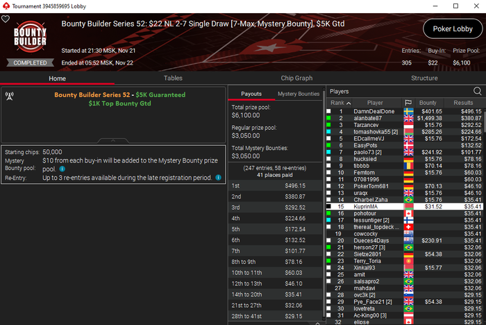 Уже сегодня вечером нужно сыграть лоуболл на серии Bounty Builder на старзах. После поезда, конечно, играть будет непросто, но нужно постараться.