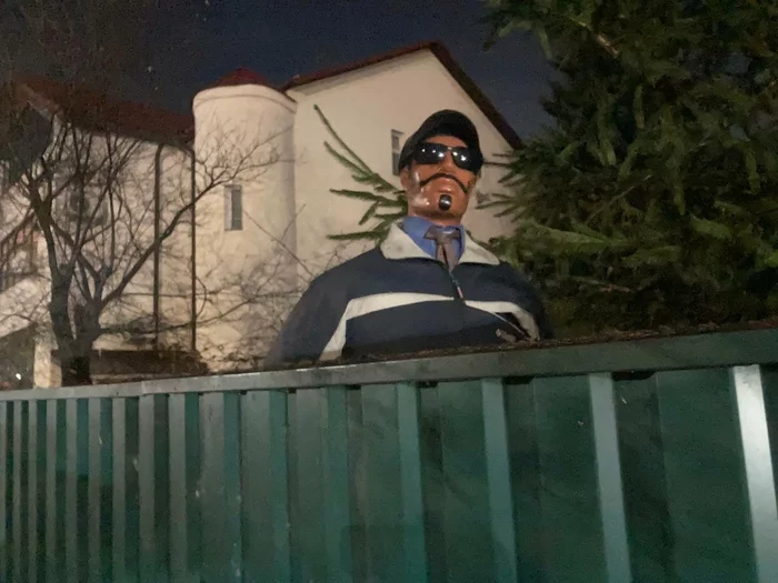 Когда мы шли домой после первого турнира, на улице уже было темно и по пути в одном из частных домов стояло вот такое чучело пугало. Позже мы назвали его Савелием.