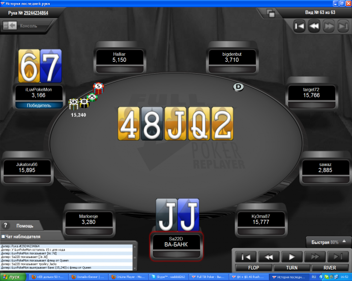 Про монетки я вообще молчу, я много рук, например ,скидываю , когда уверен, что могу быть ниже до префлопа или играть в монетку. Это только те уже где я знаю что я выше. "чуйка" работает и то хер что сделаешь