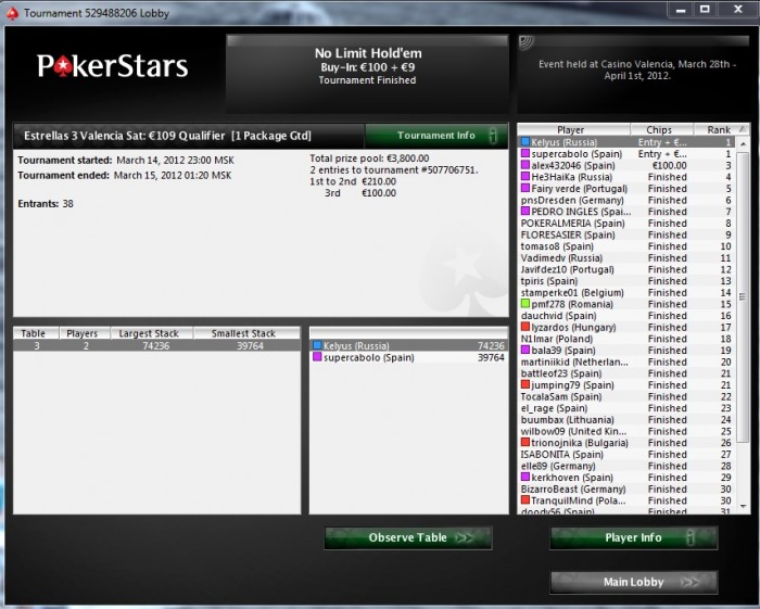 На следующей неделе поеду играть второй этап Estrellas Poker Tour в Валенсию. Было бы неплохо перед поездкой слегка поправить БР. Хотя с другой стороны в казино можно будет никого не обманывать и смело говорить, что я рашн сателлит бой, поигрывающий микролимиты. Ну или как запасной вариант в воскресенье занести таки SM и тогда можно будет козырять за столом и в стиле Remi и говорить "Do u know who is the boss at this table? If I raise u fold? Get it?"