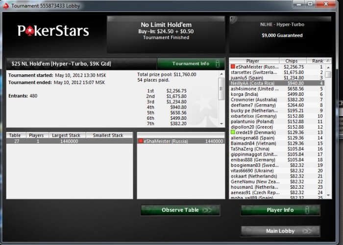 eShaMeister posts SB 400.00, icrywhenipee posts BB 800.00