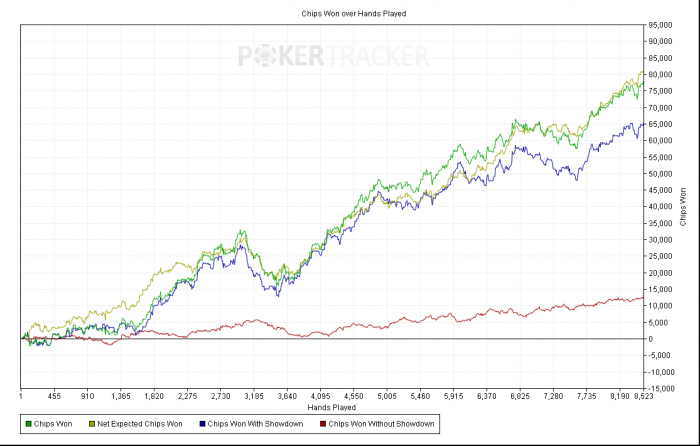 BB shows (High Card, Ace) (Pre 67%, Flop 76%, Turn 7%)