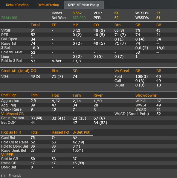 Такой опп никогда не будет минрейзить такой флоп на велью, скорее он думал так "Мой оппонент вроде адекватный, поэтому дам минрейз изображая вальта". В голове сразу появился план выбить его ставкой на терне на его почти 100% чек.