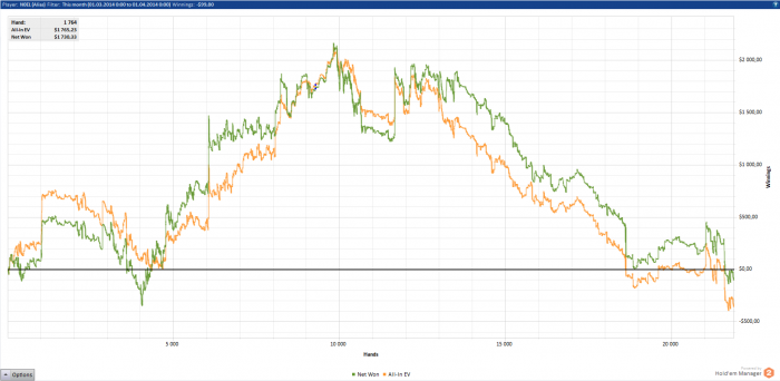 Увеличил количество игры, по часам приближаюсь к сотне, по рукам к 40к. И результат конечно же пришёл... Пробовал разное. Терпел. Отказался на время от зума. Спустился на нл 100. Опять терпел. Даже думал вывалить сюда всё говно, которого в последнее время пришлось отхлебнуть немало. Но решил, что рекордно длинное сообщение здесь ни к чему. Во-первых, неинтересно, во-вторых, такое случалось с каждым. Жаль, что время для всего этого очень неподходящее. Хотя подходящего, наверное, и не бывает.