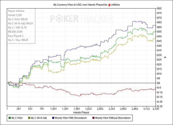 Вазнь, ну я токо 3 недели отыграл на 2х столах и тк начало месяца было ужасное общий винрейт за месяц всего 2,5 бб по ев около 5 бб короч дистанция маленькая рано о чем то говорить.