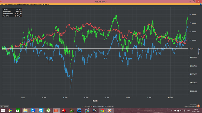 а вообще на нл400 по прежнему куча плохих опов, правда рыбы по меньше и реги по агрессивнее, но это все ощущается от каждого перехода по лимиту, так было и когда я переходил с нл5 на нл10